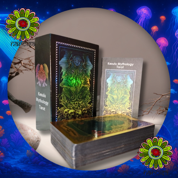 Inspirado en la mitología de Cthulhu y los seres primigenios del universo Lovecraftiano, este tarot es una pieza de arte y misterio. Su estética oscura, psicodélica y con acabados dorados en foil lo convierten en una herramienta potente para quienes se atreven a mirar más allá del velo.