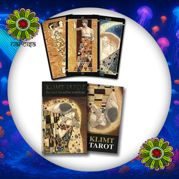 El Tarot Dorado de Klimt homenajea la obra única y sensual del célebre artista Gustav Klimt. Sus cartas se caracterizan por un espléndido uso de láminas doradas y decoraciones ornamentales típicas del estilo modernista vienés, capturando la esencia de la pasión, el amor y los misterios espirituales y terrenales.