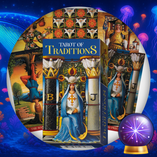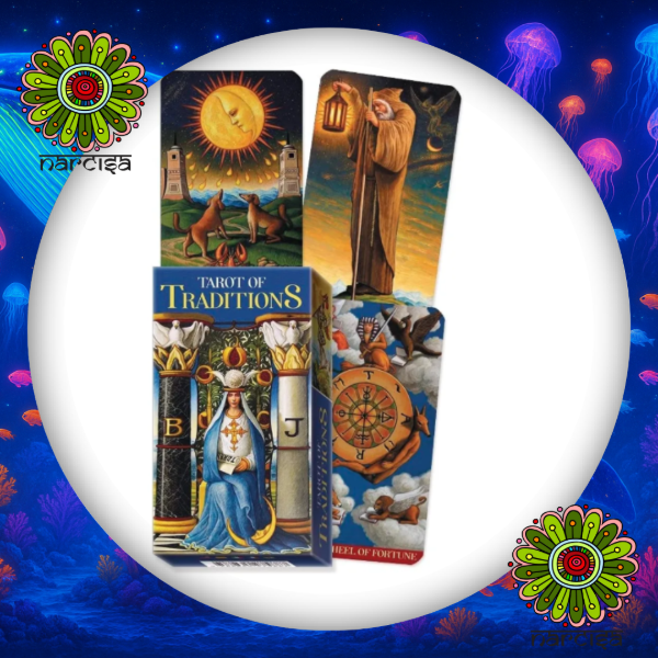 Creado por Giuliano Costa, el Tarot of Traditions combina la esencia clásica del tarot Rider-Waite-Smith con una estética vibrante y renovada. Cada carta presenta ilustraciones cuidadosamente detalladas con una paleta de colores cálida y profunda, evocando una sensación de conexión auténtica y tradicional con los arquetipos del tarot.