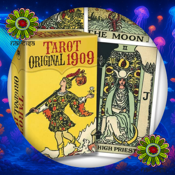 El Tarot Original 1909 es una reproducción fiel y detallada de la legendaria primera edición del Tarot Rider-Waite-Smith, diseñada originalmente por Arthur Edward Waite e ilustrada por Pamela Colman Smith en 1909. Esta baraja clásica captura la esencia original, presentando los colores, ilustraciones y detalles tal como fueron creados en su primera publicación.