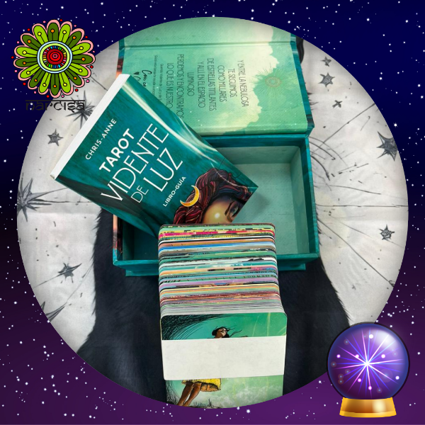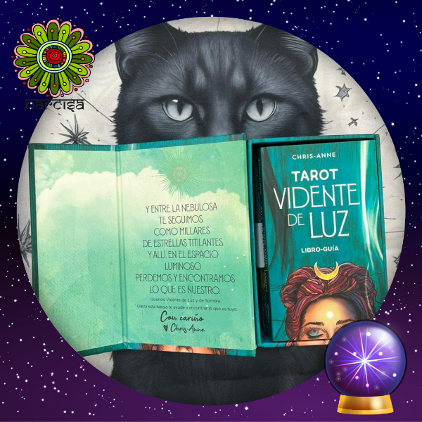 Esta baraja de tarot de 78 cartas es una herramienta de sanación y una guía para explorar las dos caras, la de la luz y la de la sombra, de nuestra naturaleza. Al concebir de nuevo los arquetipos y símbolos del tarot tradicional y mostrarlos en un estilo contemporáneo, bohemio e intuitivo, el Tarot Vidente de Luz muestra las dos caras, la de la luz y la de la sombra, de nuestra naturaleza y explora las lecciones que se pueden aprender de ambas. Los expresivos personajes que viven dentro de los paisajes de cada una de las cartas cuentan historias, hacen preguntas y brindan orientación. Esta baraja es un acompañamiento ideal en la búsqueda del descubrimiento de los espacios de tu vida, y de ti mismo, que necesitan mayor iluminación.